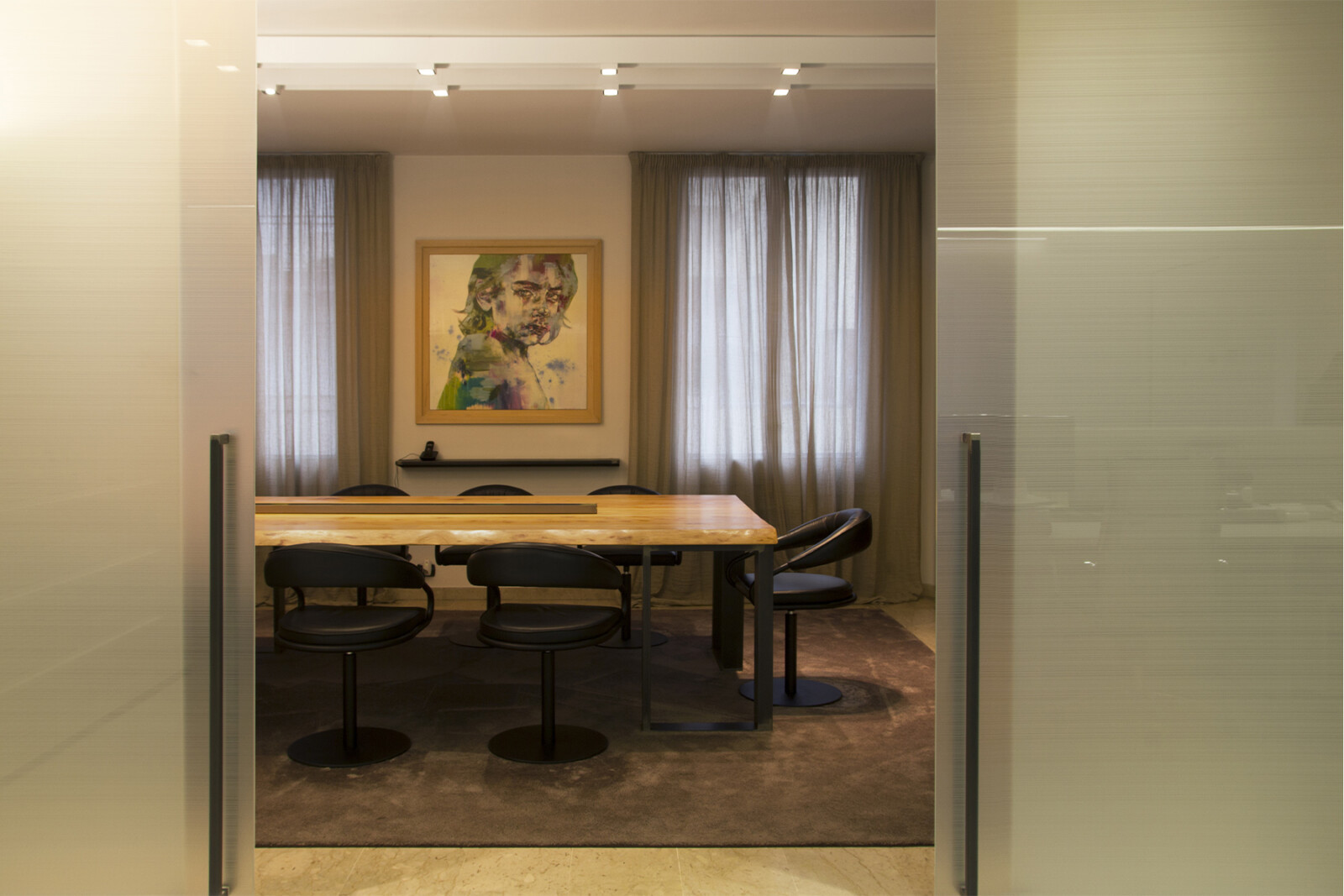 Si è scelta l’utilizzo della Tinta Bianca per gli ambienti di ingresso ed accoglienza, questa va a caratterizzare sia le superfici orizzontali, verticali sia l’arredo scelto.
