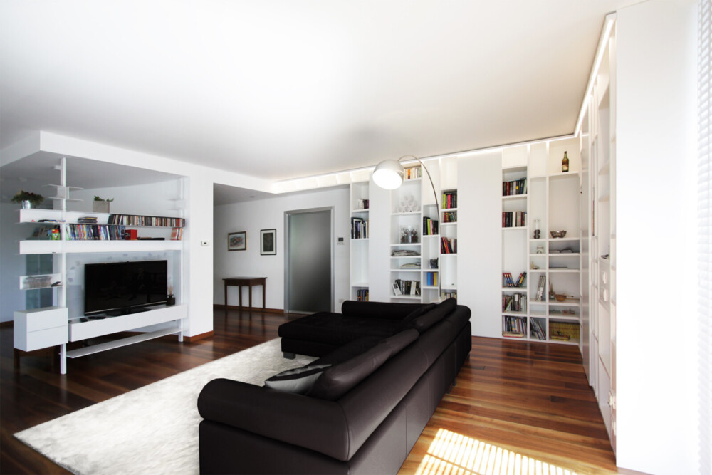 Nel comune comasco di Brunate prendono vita una zona living e zona pranzo in un unico ampio spazio.